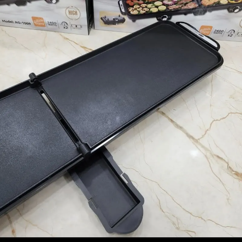 بفضل قوة تسخين عالية تصل إلى 2400 واط، توفر هذه الشواية توزيعًا متساويًا وسريعًا للحرارة، مما يضمن طهيًا مثاليًا في كل مرة. سواء كنت تشوي اللحوم، الخضروات، المأكولات البحرية، أو حتى وجبات الإفطار، فإن سطح الطهي المزدوج والواسع يتيح لك إعداد عدة أطباق في وقت واحد — مثالي للعائلات أو التجمعات.